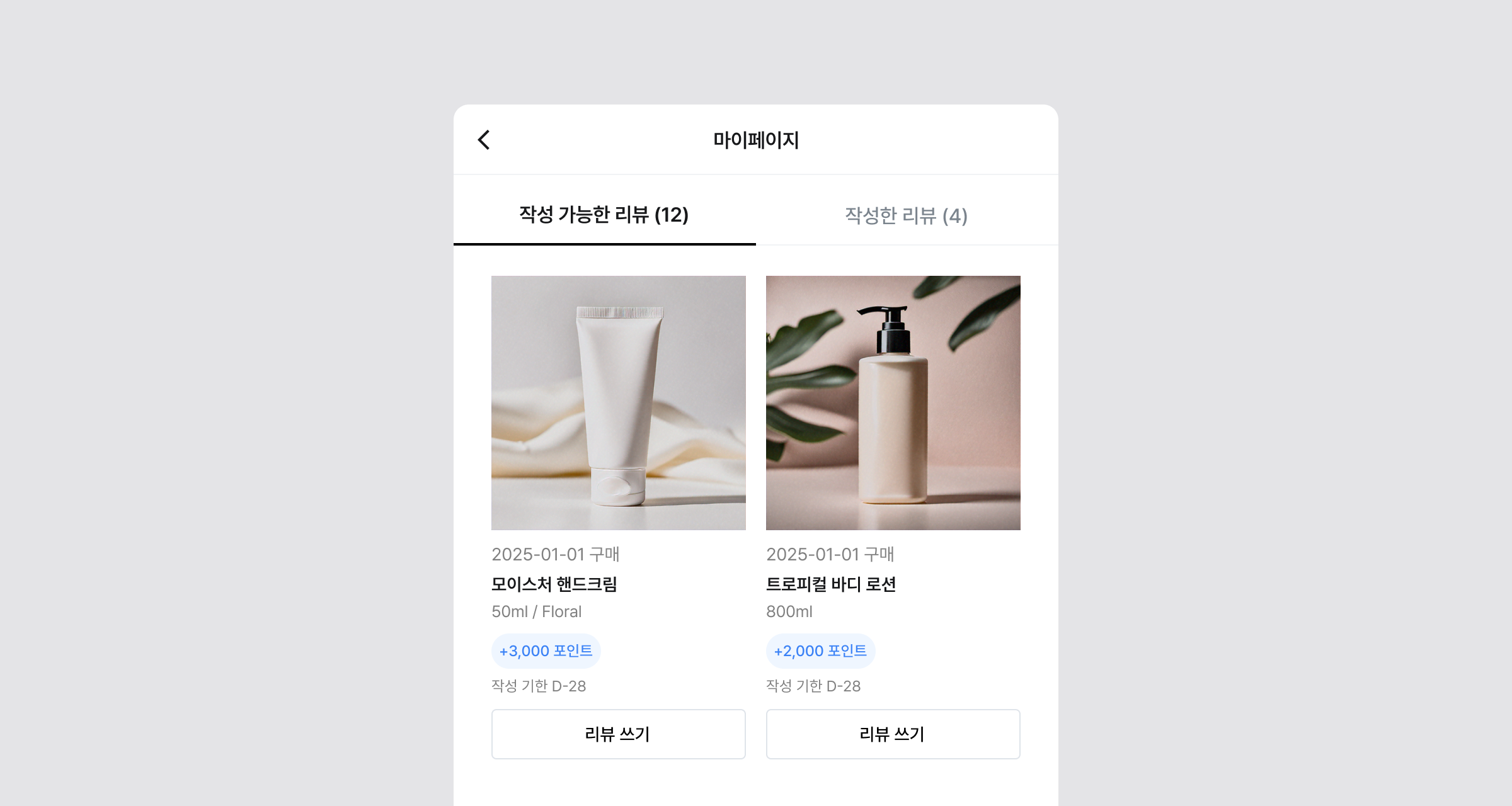 작성 가능 기한 → 예: 배송완료 후 30일 이내