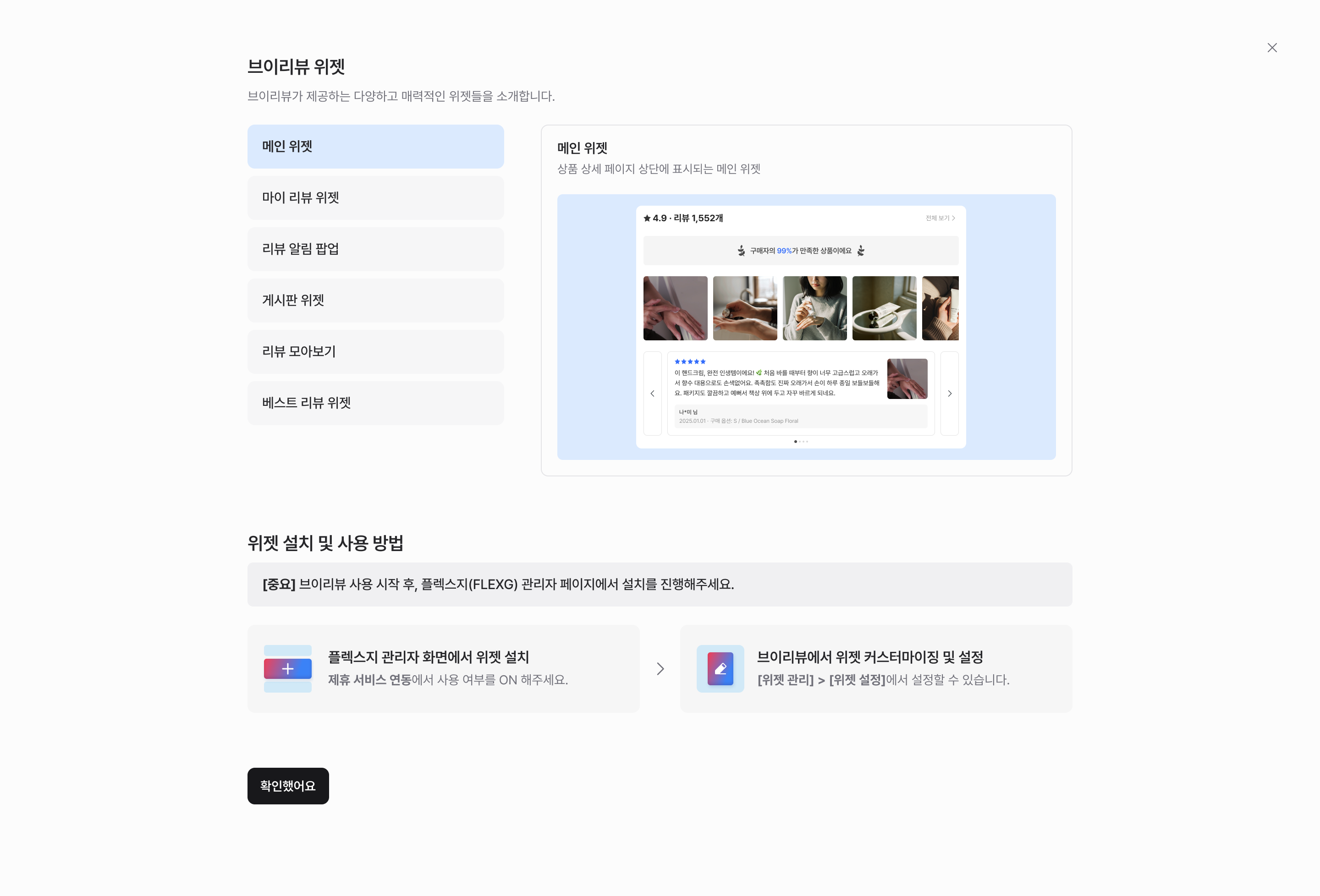 설정 이후 브이리뷰 [위젯 관리] → [위젯 설정]에서 세부 설정을 조정하실 수 있습니다.