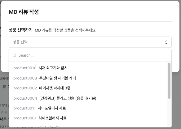 MD 리뷰를 작성할 상품을 선택합니다.