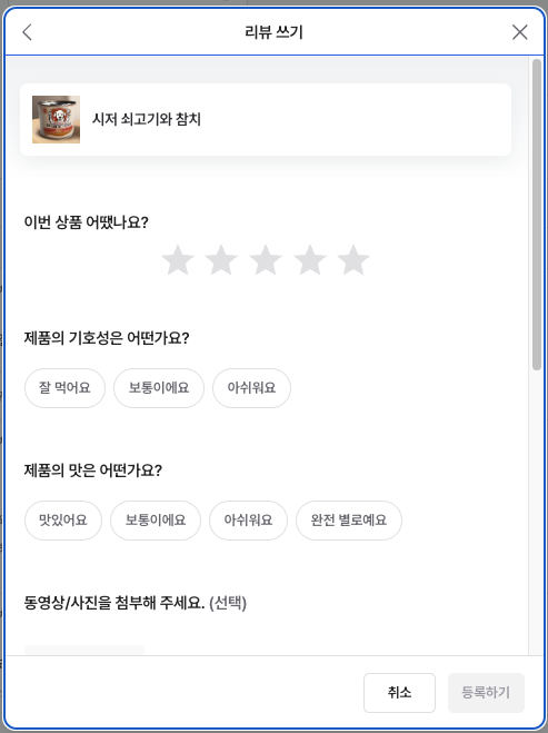 텍스트, 사진/동영상, 별점 평가가 가능합니다.